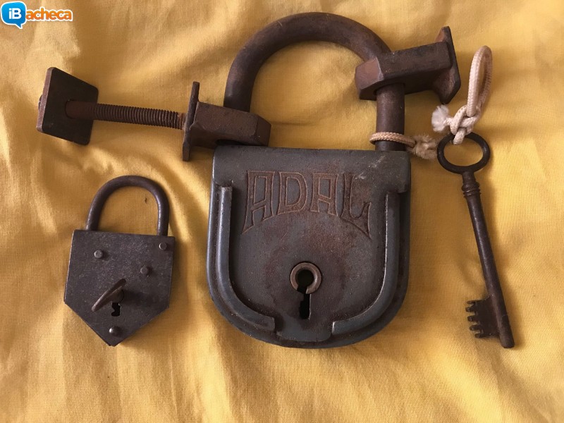 Disponibili solo tramite spedizione, vendo come da foto due antichi lucchetti di cui 1 ancora con le sue originali ed antiche staffe di fissaggio a euro 70 compreso spedizione in tutta Italia. Tel. 3200135813.