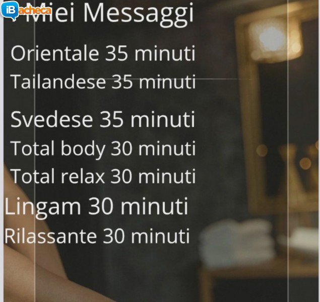 Sono una massaggiatrice olistica pratico massaggi di ogni genere per info solo tramite whatsapp.