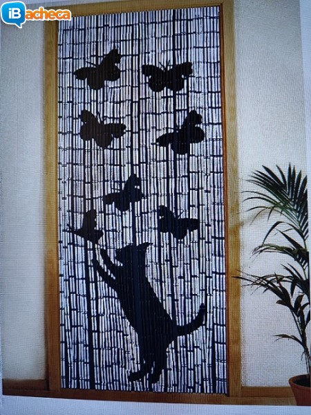 Tenda decorativa di bambu' nuova ancora mai montata bicolore bianco/nero disegno con gatto e farfalle da installare sopra la porta con viti o chiodi dimensioni (larghezza x altezza) 90 cm x 200 cm euro 35,00 visibile acquisto e ritiro a pomezia (rm) no spedizione per informazioni scrivere e-mail oppure chiamare o messaggio tramite whatsapp al 336-770073 (luca).