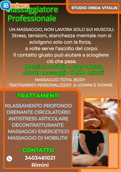 Massima serietà e riservatezza durata massaggio 60/90 minuti