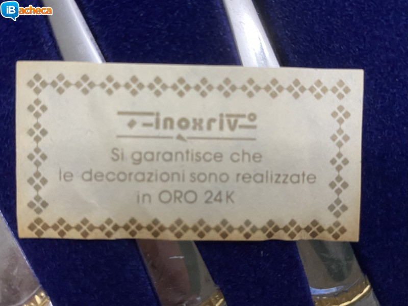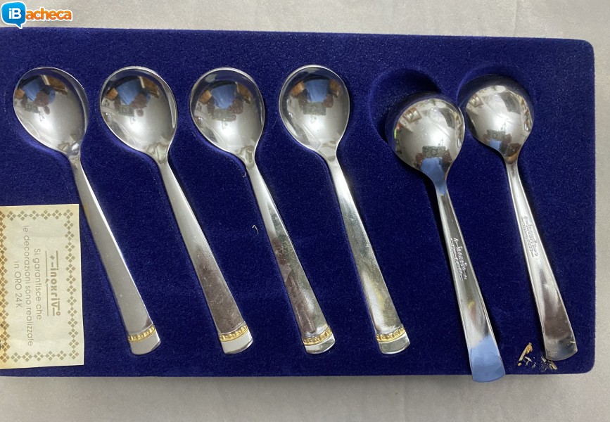 Vendo 6 cucchiaini in acciaio inox con decorazione in oro 24K a € 35 + spese di spedizione. Tel.3200135813.